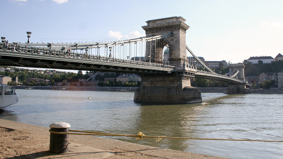 Dal ponte Erzsébet híd, prendiamo una via appena all’interno a quella che costeggia il Danubio, per poi arrivare sulle sponde del fiume di sotto al Széchenyi Lánchíd (ponte delle catene), era all’epoca tra i più lunghi al mondo con i suoi 202 m di lunghezza su campata unica. Il ponte è decorato all’entrata da statue di leoni, sculture che, a dispetto della tradizione, rappresentano il re degli animali senza lingua. Da qui, vediamo sulla sponda di Buda, il tunnel da dove siamo arrivati nella mattinata. Racconta la leggenda che durante la sua realizzazione fu costruito un tunnel per proteggere il ponte durante i giorni di pioggia. Il tunnel si trova giusto di fronte all’entrata del ponte e, a quanto pare, è lungo esattamente come quest’ultimo.